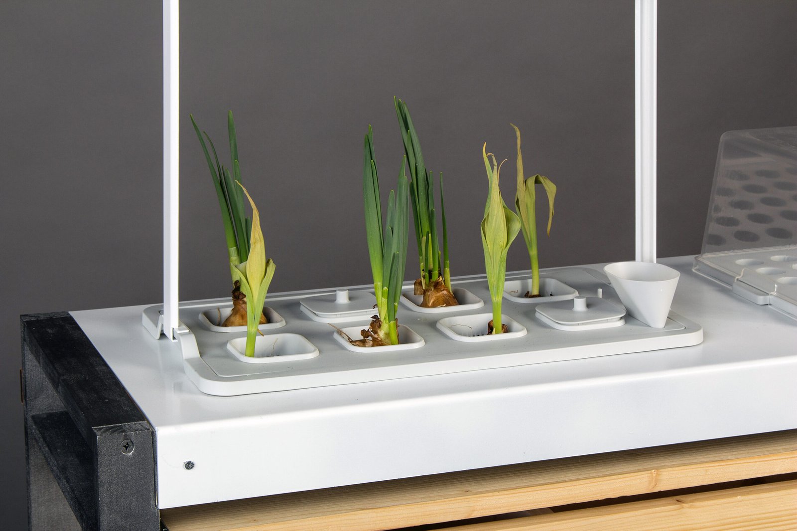The IKEA VÄXER hydroponic set consists of a sprouter and a cultivation tray. Both components are versatile and can either support the integrated lighting system or be positioned wherever is most convenient, offering flexibility in the setup. This adaptability makes it easier to optimize space while ensuring the system meets the needs of hydroponic cultivation.