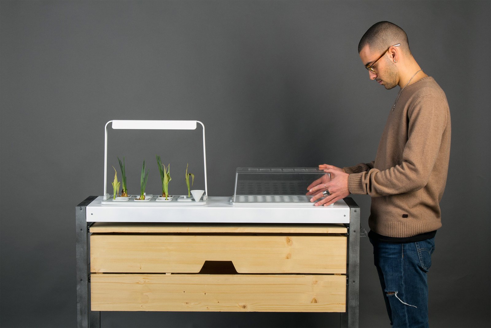 Grön challenges traditional furniture design by developing a compact hydroponic system that serves multiple functions within a small space. The project explores how to integrate functionality and space-saving design without sacrificing usability or performance. The challenge was to create a system that meets the growing demand for sustainable living solutions, particularly for millennials living in limited spaces, while maintaining practicality and ease of use.