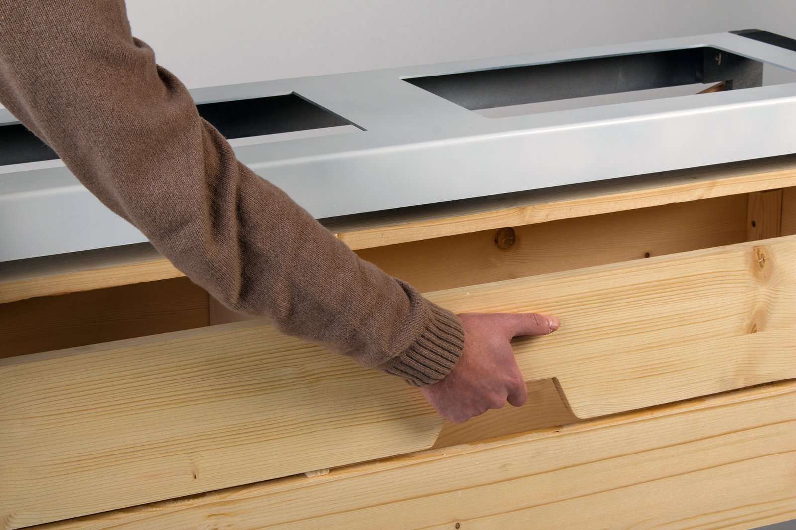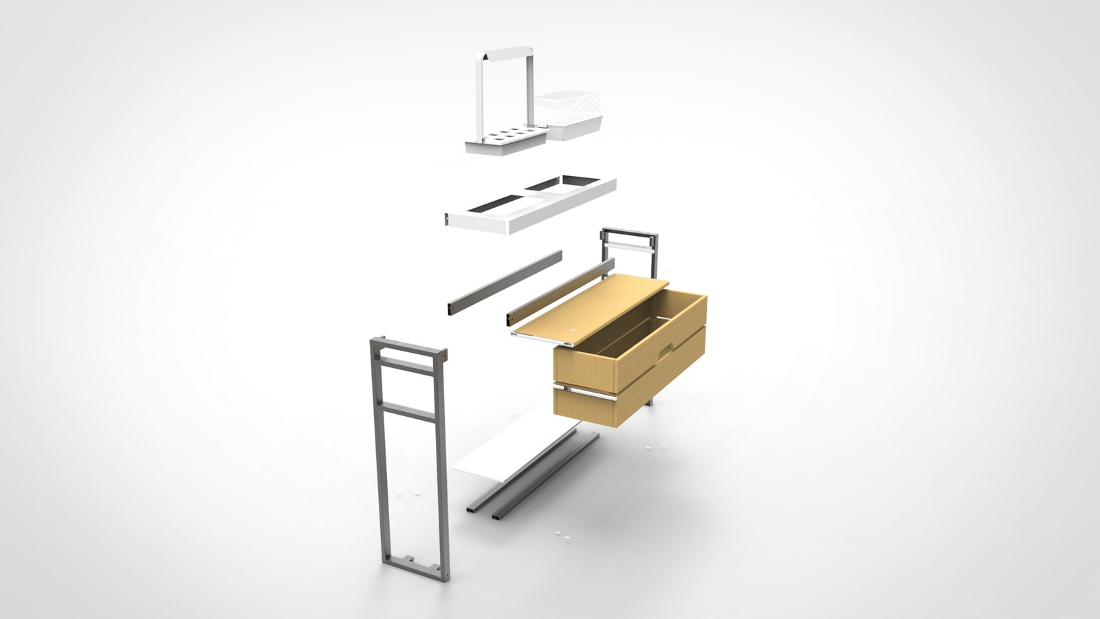 To create the prototype, we purchased the IKEA Vaxer set. We fabricated the top and bottom panels from sheet metal. The legs of the console were made from wood and then painted, while the shelf was constructed from wood and coated with a protective stain to enhance durability and ensure a refined finish. This approach combined IKEA’s ready-made elements with custom components to achieve both functionality and design coherence.