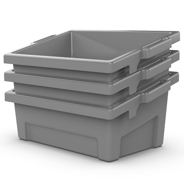 The custom-designed 48L sorting boxes are built to fit securely onto the supporting rails, ensuring stability and ease of use. They feature ergonomic handles for better grip, are sized for efficient transport, and have a stackable design for optimized storage. FEM analysis was conducted to ensure their durability and reliability.