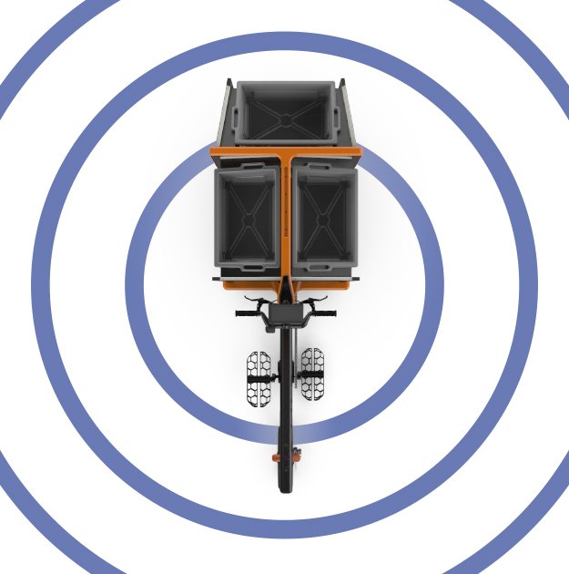 To eliminate the need for a paper sheet with package collection instructions, the bike is connected to the warehouse management system and guides the operator through this process using a display mounted on the handlebars. This integration with the system optimizes the arrangement of packages in the sorting boxes. In addition to the bike, the operator wears a glove with an RFID reader, removing the need for a barcode scanner and keeping both hands free. Once the correct package is picked, the corresponding box will light up green. RFID readers on the bike track whether the package is correct and placed in the right container, providing visual (green or red light) and auditory feedback to ensure efficient handling and minimize errors.